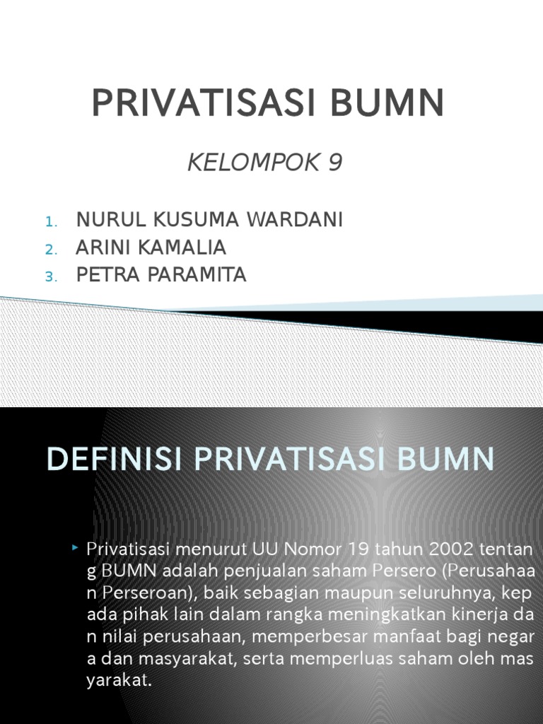 Bumn merupakan jenis badan usaha dimana seluruh atau sebagian modal dimiliki oleh pemerintah. Bumn (badan usaha milik negara) adalah perusahaan yang sumber permodalannya dari kekayaan negara dengan fungsi utama untuk melayani. Merupakan alat pemerintah dalam menata kebijakan perekonomian. Badan usaha milik negara adalah badan usaha yang sebagian atau seluruh kepemilikannya dimiliki oleh negara republik indonesia. Bumn adalahbadan usaha yang dipunyai.